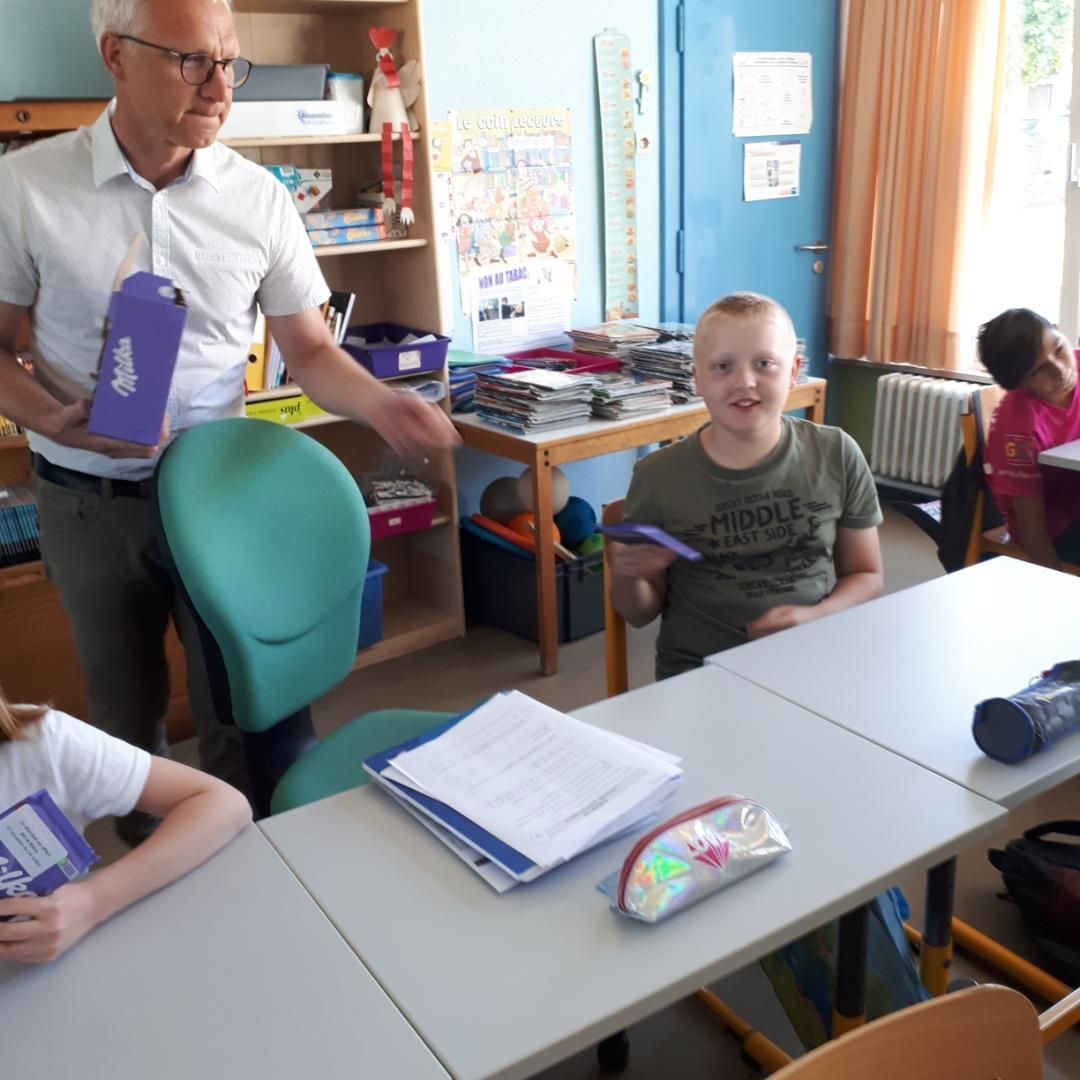 LE CHOCOLAT DU 14 JUILLET Article publié le 2 juillet 2022 A l'occassion du 14 juillet, et afin de reprendre et perpétrer une ancienne tradition, une tablette de chocolat a été offerte par le Maire a chaque enfant fréquentant les écoles maternelle et primaire de la commune. Quelques photos...