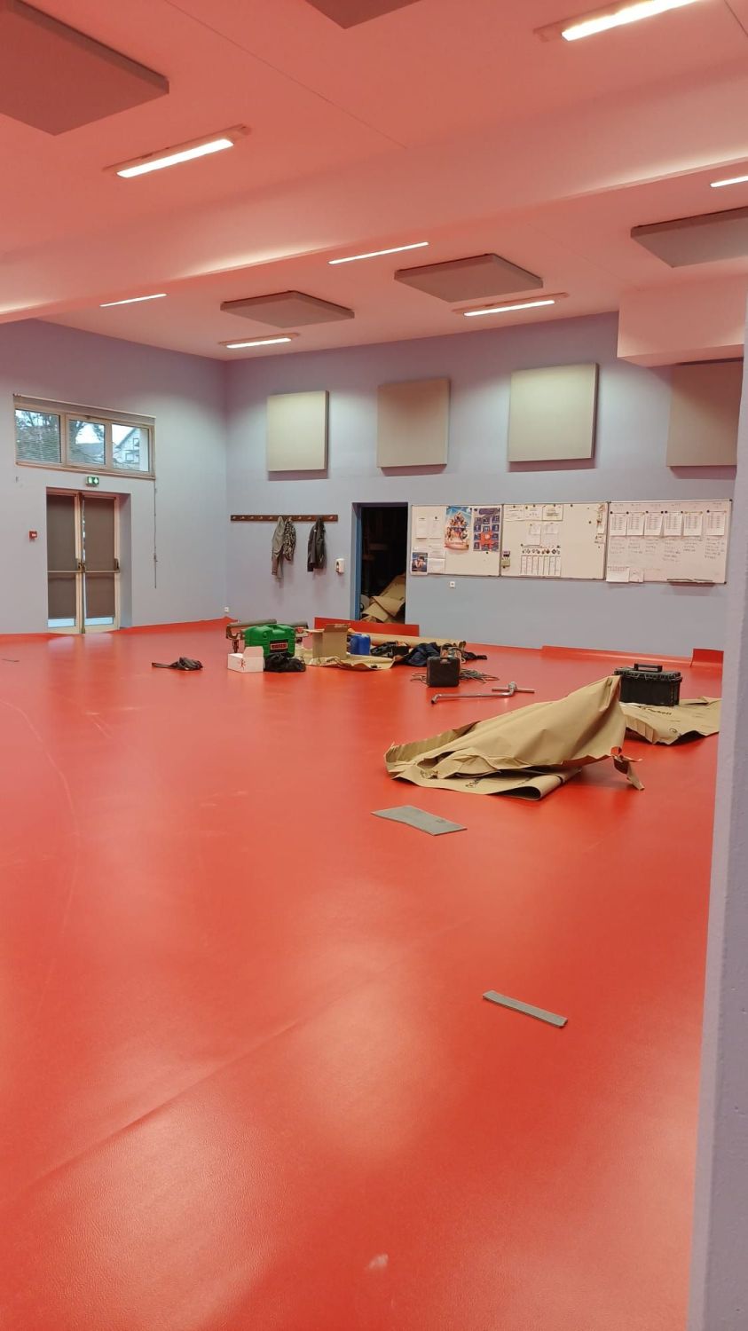 RAFRAICHISSEMENT DE LA SALLE DE PING PONG Article publié le 10 février 2026 Suite à la mise en peinture des murs, les travaux se concentrent désormais sur la réfection du sol. Un tapis spécifique aux exigences du sport est en cours de déploiement. Quelques photos...
